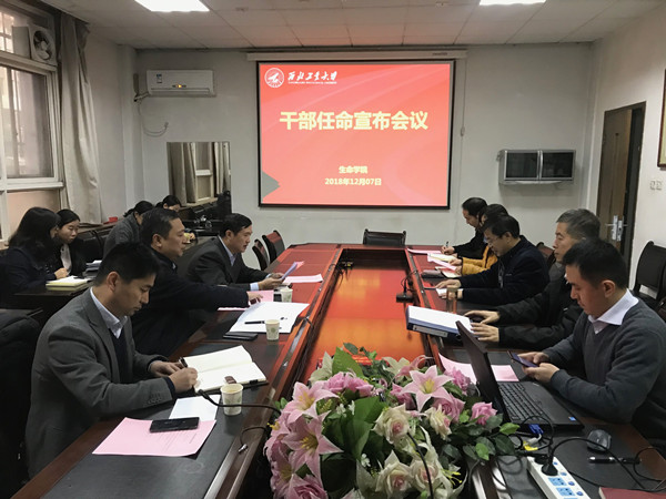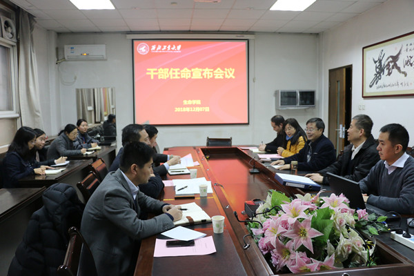 12月7日下午,永利集团3044官网欢迎您在102会议室召开干部任命宣布会议,校长助理侯成义同志,党委组织部部长詹浩同志,唐玉生同志,永利集团3044官网欢迎您领导班子成员,系主任,教工党支部书记,办公室全体人员参加。会议由学院院长仓怀兴同志主持。
