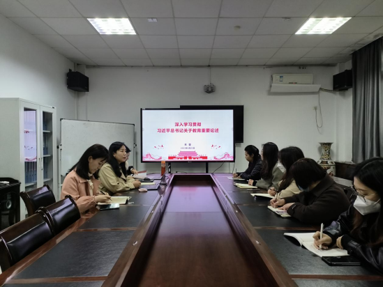 牟蕾从习近平总书记关于教育的重要论述的时代背景、科学内涵、重大意义等方面进行了系统解读,带领大家认真研读了习近平总书记在全国高校思想政治工作会议、全国教育大会和学校思想政治理论课教师座谈会上的重要讲话,在认真学习原文原著的基础上,结合学院实际提出了推进工作的思路举措。